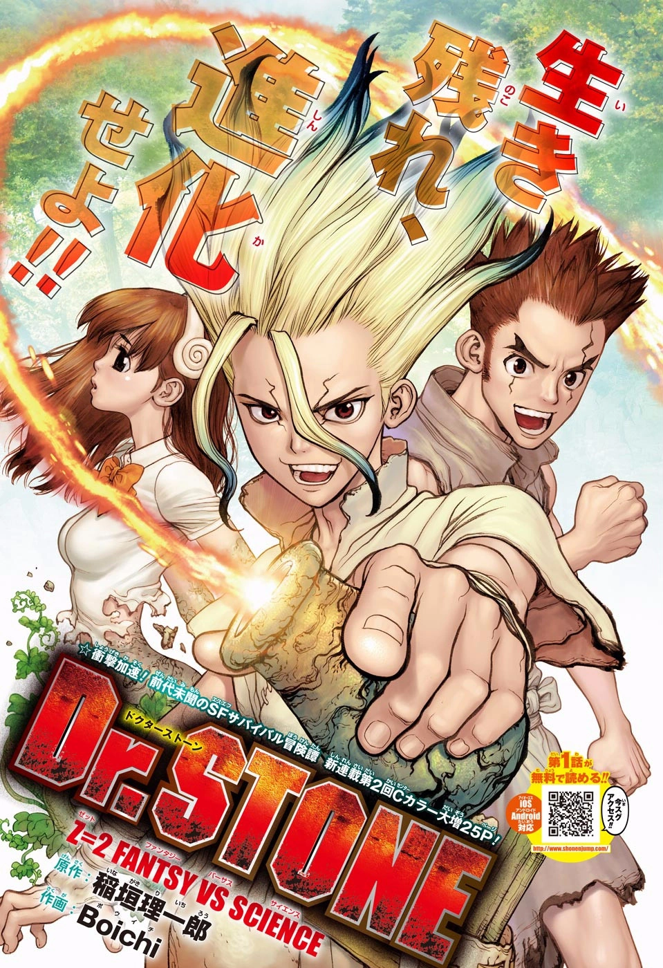 Rozdział FANTASY VS SCIENCE (jp. ファンタシー バーサス サイエンス, Fantashī Bāsasu Saiensu) miał swoją japońską premierę 13 marca 2017 roku i liczy 25 strony. To drugi rozdział pierwszego tomu i mangi Dr. Stone.