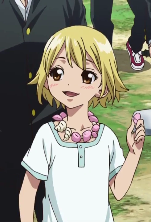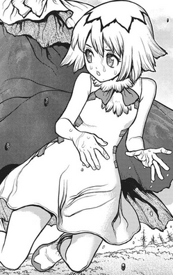 Мираи - миниатюрная девушка, чуть старше Суйки. Ее шрам окаменения - это тёмная линия в её волосах.
