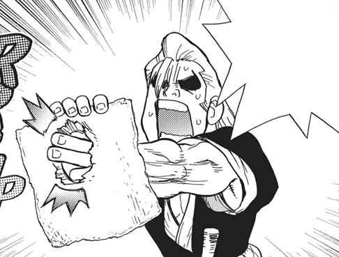 During Ryusui's rallying speech, Ryusui brings up the fact that Dr. Xeno probably assumes that removing Senku means removing the scientific threat, and that at any moment they might come and ask them to surrender. Magma shoots down the assumption that they'd "just give up" and the others agree to continue fighting. [56]
